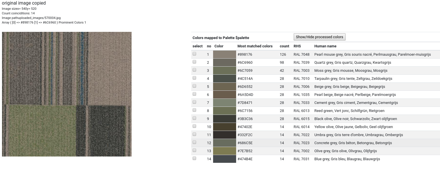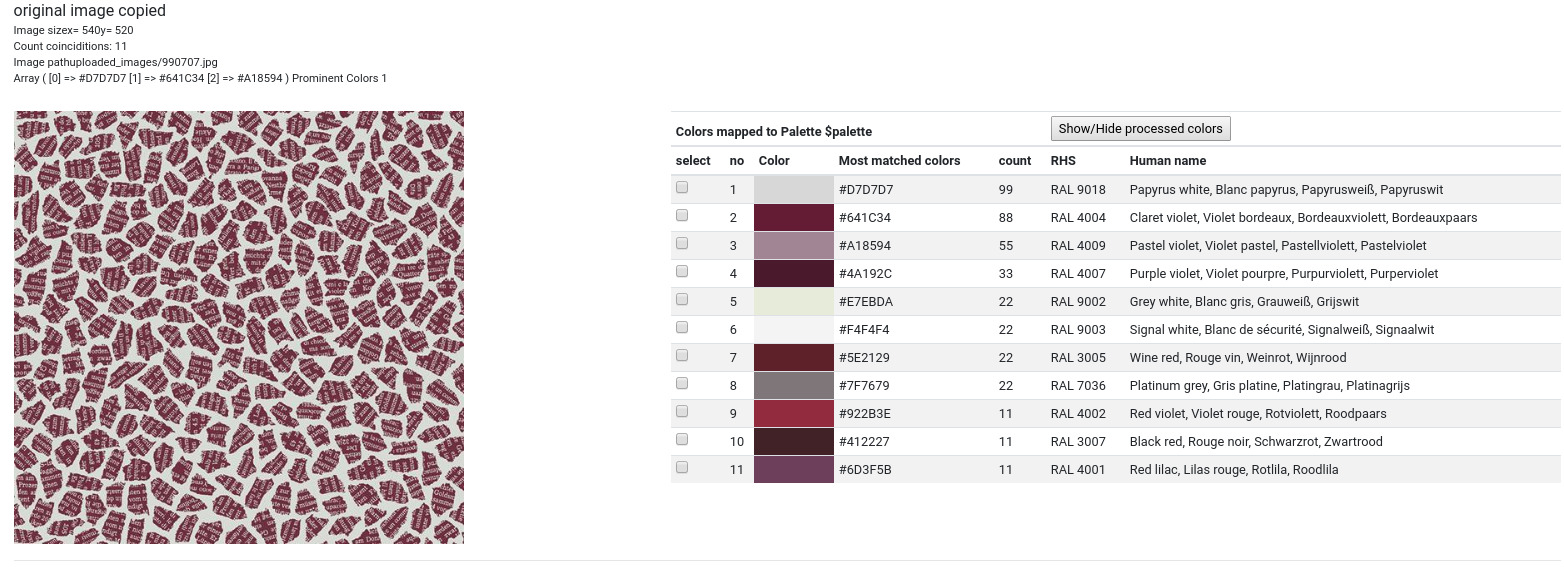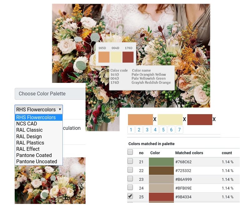 So far it is the only tool that allows mapping the extracted colors to an existing Color Palette. The interface is compatible with mobile devices and is fast and precise.
