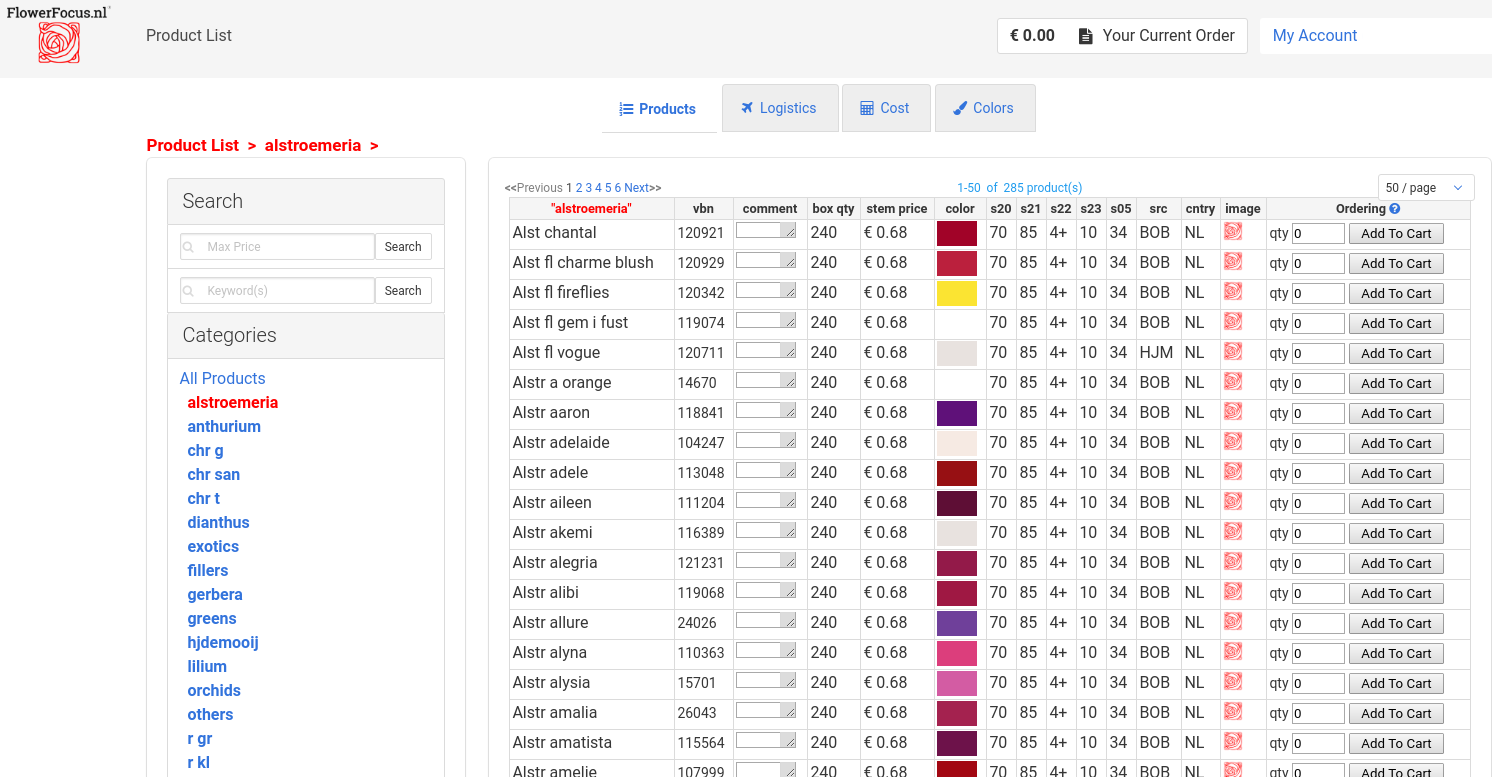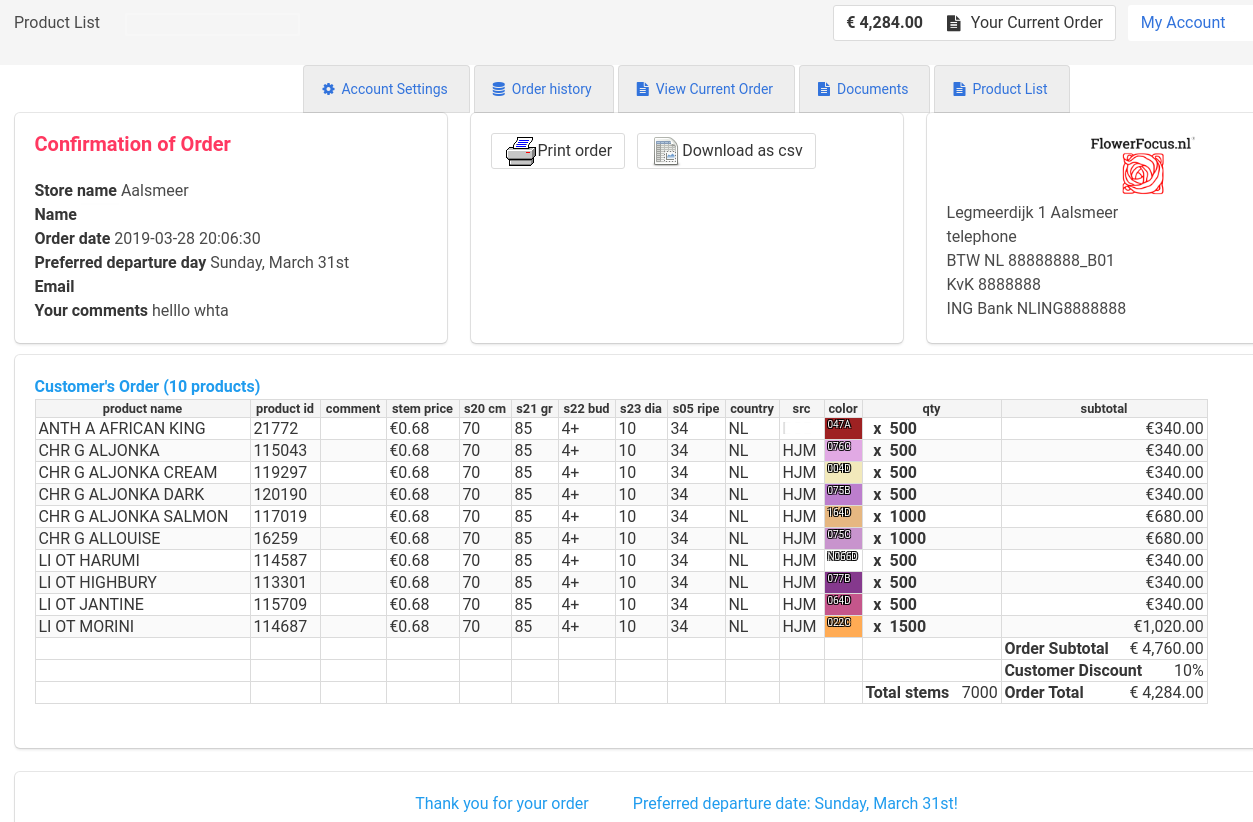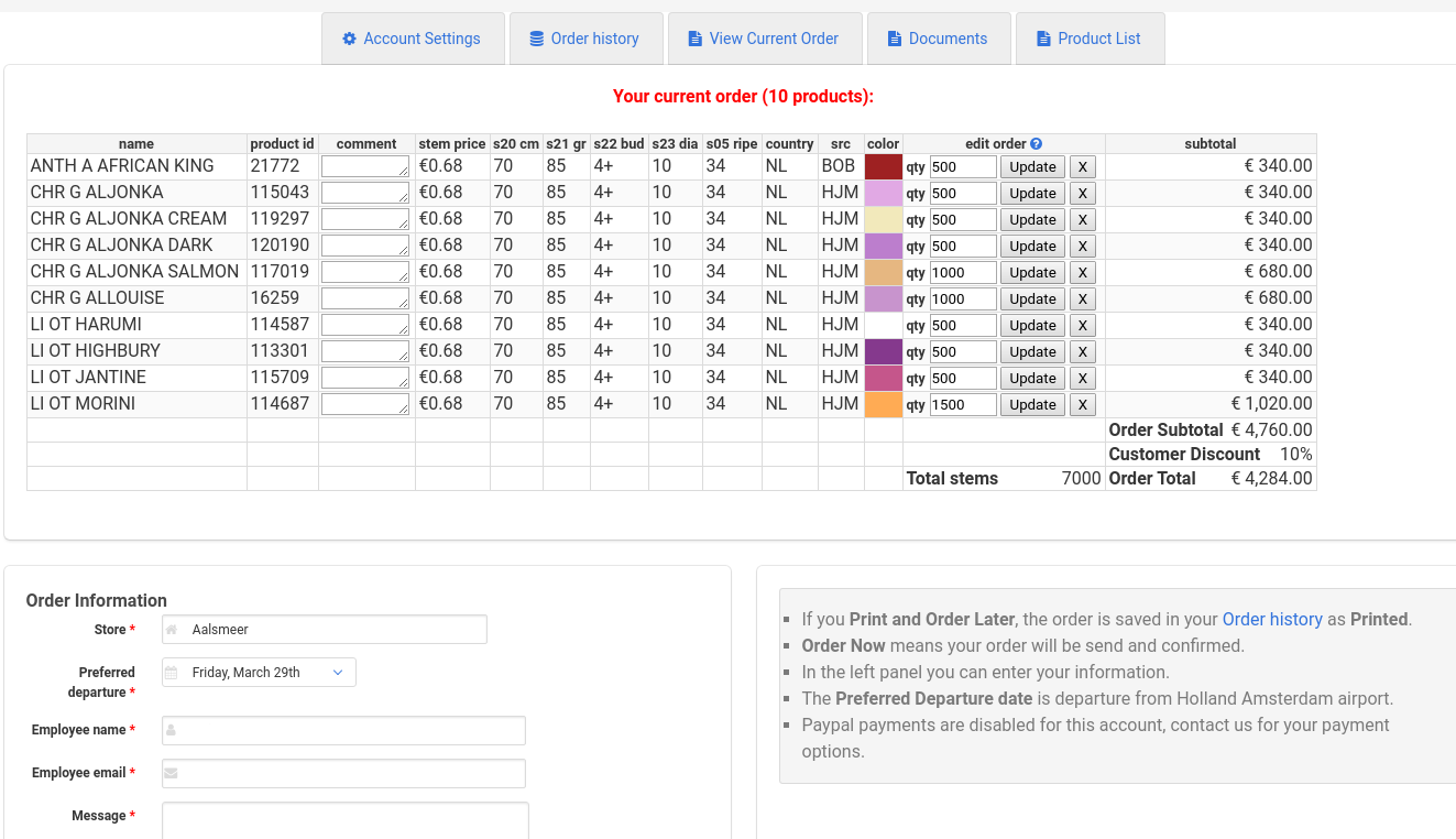 From the online stocklist the clients can order and/or immediately pay.