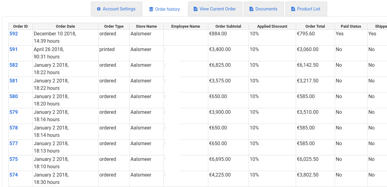 All clients have a complete order history and invoices online. How useful!