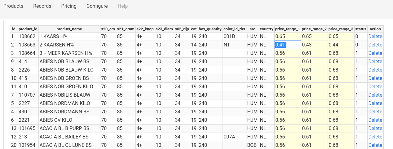 So the products then can be easily priced inline in the webapplication as in a spreadsheet.